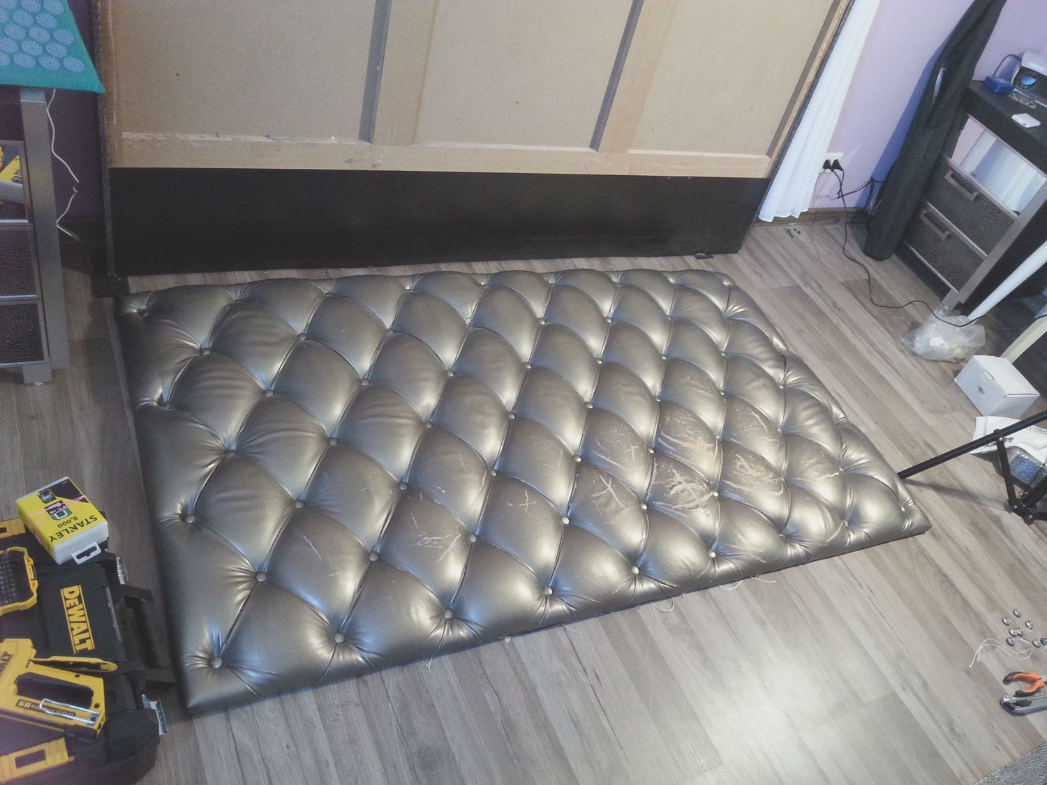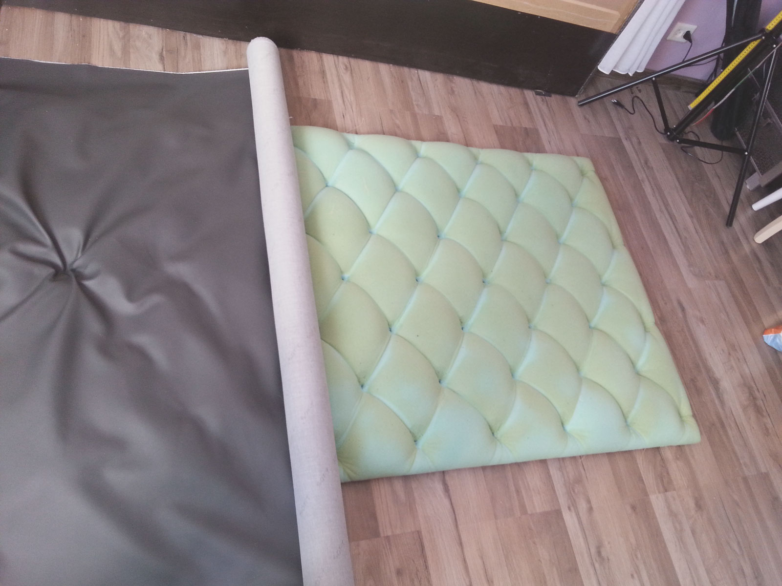 Käsitsi valmistatud - Handmade. Capitone ilma õmblusseadmeteta. Tumbade, seinte, riidepuude, voodipeatsite polsterdus.