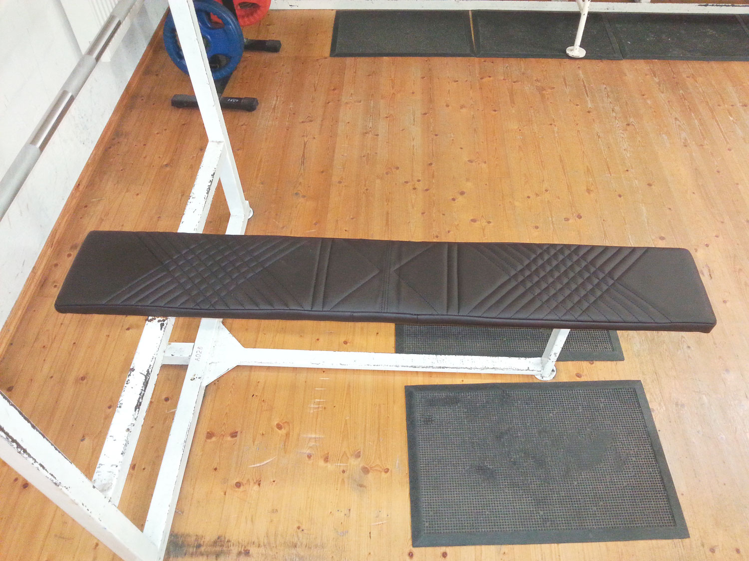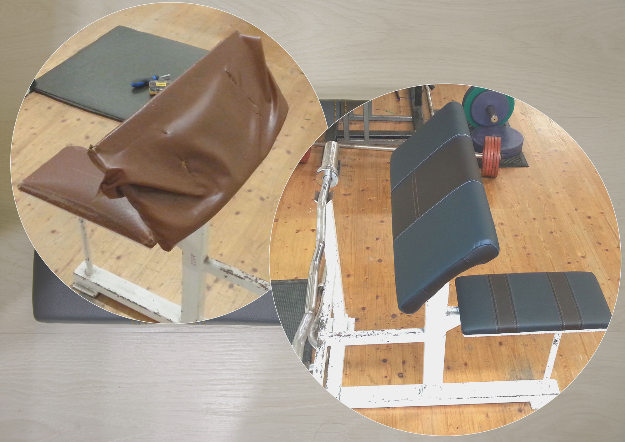 Fitnessi treeninguseadmete ja -pinkide kahjustatud katte vahetus. Disaini ergonoomika muutmine, parendused.
